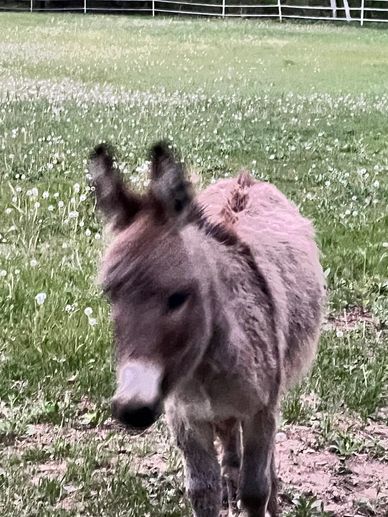 Dorie is a 2 year old mini donkey "Jenny". She has assisted in some adult groups assisting in the neuroscince of behavior trainings and support with her handler Tia Dvorak